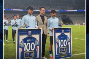 里程碑!申花主场战英博赛前,为汪海健和徐皓阳举办百场仪式