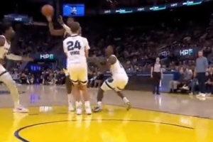 库里提前握拳庆祝!库明加顺下接球起飞 双手脆扣&网都没动!