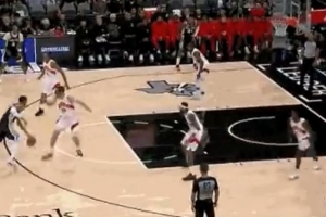 少林寺圣僧!?文班亚马外线运球拜佛过人 突破后被犯规倒地