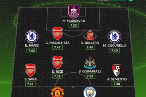 WhoScored英超十月最佳阵:哈兰德锋线搭姆伯莫,枪手3人蓝军2人