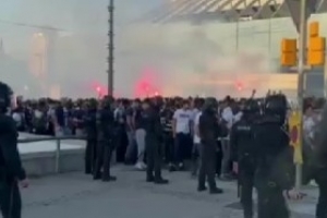 赛前火药味!巴萨、巴黎球迷场外大规模冲突,警察出动维持秩序