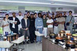 体育资讯10月3日讯 快船官推晒照,全队一起观看橄榄球洛杉矶公羊VS旧金山49人的比赛,并拍摄全家福合影。