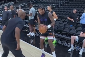 20+分差!布克追身三分轰进 想要3+1裁判没给