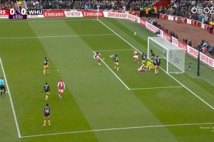 体育资讯10月04日讯 英超第7轮,阿森纳vs西汉姆联。比赛第13分钟,埃泽面对空门凌空踢飞,枪手错失良机。
