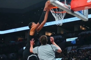 存在感十足~杨瀚森坐镇篮下大帽克林根 转头助攻夏普超远抛射落袋