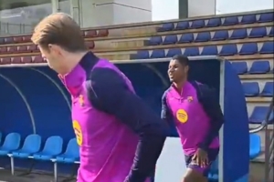 今日巴萨进行了训练,为本场比赛备战。巴萨还在社交媒体上晒出训练视频,并配文写道:“各国家队球员恢复训练。”