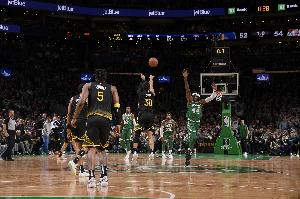 记者:35英尺外,最后三秒——但如果是第四节,这球就不算(指不影响命中率)。