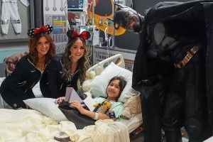 暖心大男孩!内史密斯COS蝙蝠侠 带着拉拉队去医院看望生病小朋友