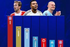 本赛季即将进入11月,而凯恩、姆巴佩、哈兰德的进球数已经超过15球。
