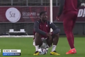 今天凌晨进行的第14轮法甲联赛,梅斯主场0-1负于雷恩。在赛前进行热身时,科菲·库奥却一直坐在一个足球上,拒绝起身和队友们一起热身。尽管队友和教练组成员都对他进行了劝说,但科菲·库奥始终坚持这么做。