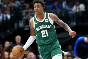泰勒·史密斯身高201cm,司职前锋,是2024年的第33号秀,上赛季为雄鹿出战了23场比赛,场均登场5.3分钟,得到2.9分1.1篮板。