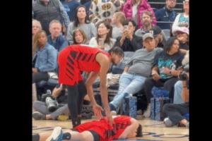 相关新闻:杨瀚森遭遇包夹被埃迪打到面部痛苦倒地 在地上躺了半天没起来
