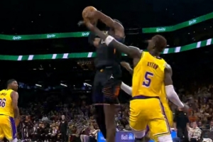 泰山压顶!泰森溜底线切入接球单臂砸扣恩比德