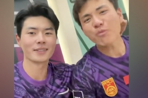 赛后中国队替补门将霍深坪更新社交媒体,晒出中国队更衣室放音乐跳舞庆祝动态。李昊在视频中爆粗口庆祝。