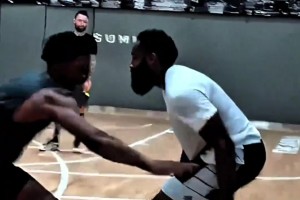 他太想打球了!绿军自媒体晒图:杰伦-布朗跳投 塔图姆暗中观察